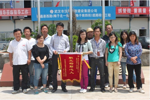 武漢天創市政建設工程有限公司行政部獲連通港西路項目部贈予 “職工的貼心人”榮譽錦旗