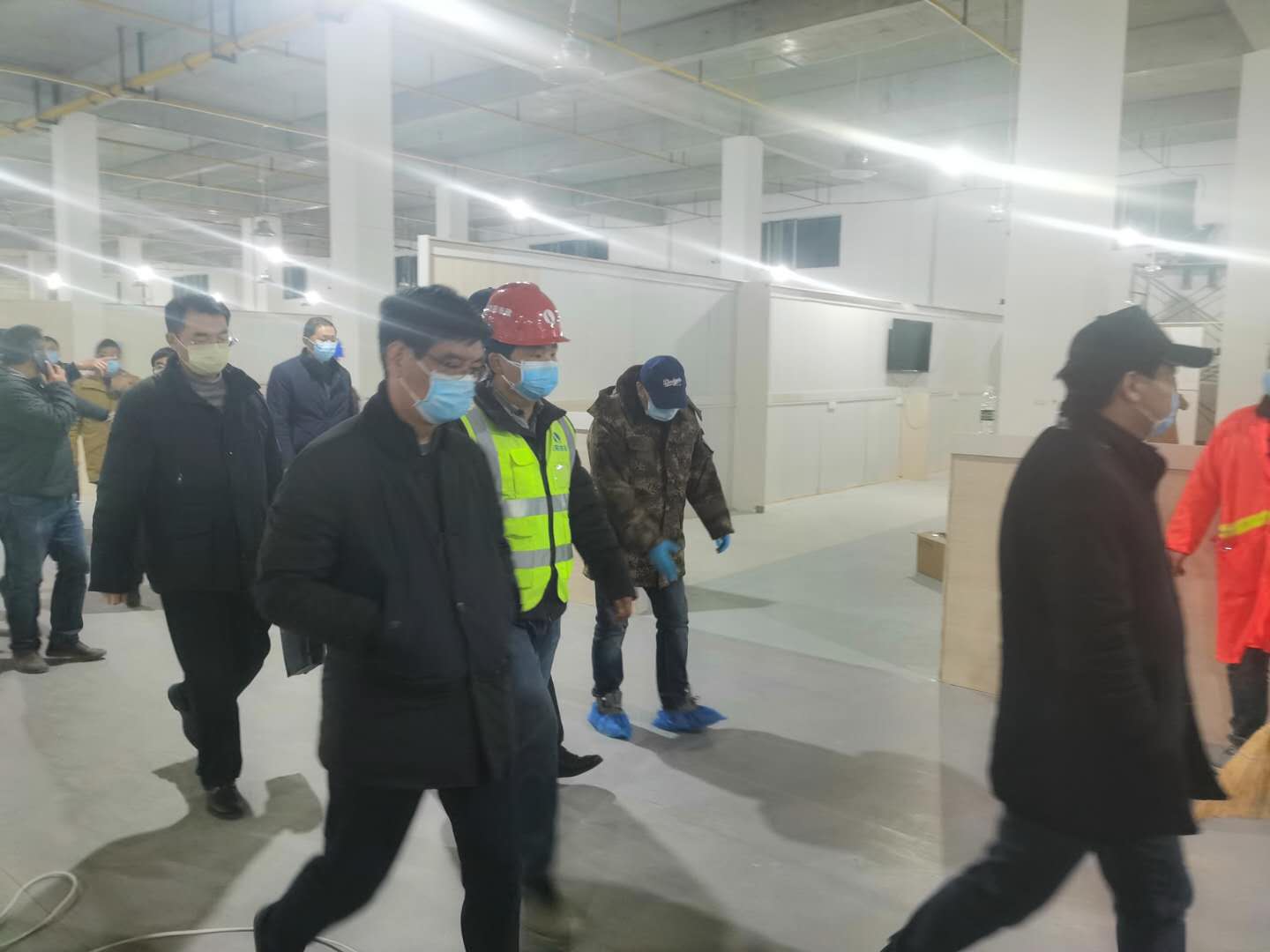? ? ? 2月19日,武漢市東西湖區區長彭濤一行早晚兩次到漢陽市政天創公司承建的新城十三路方艙醫院現場視察建設情況。漢陽市政天創公司總經理鄒勇陪同。彭濤一行查看現場情況后,對建設成效及漢陽市政表現出來的建設能力和建設速度表示肯定。