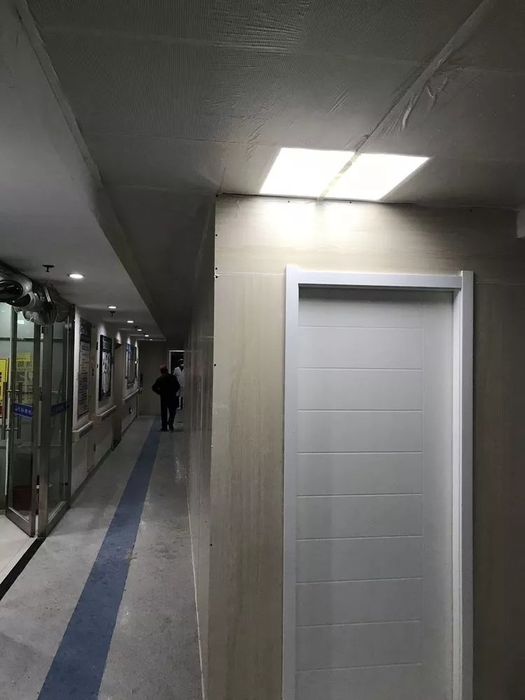 ? ? ? 為了順利完成任務,2月16日清早,休息不足4小時的項目人員便趕忙開始進行第一階段的施工,并于17日凌晨完成4層樓共計280張隔板、28扇門的施工,為確保第二階段施工能盡早開始,完工的4層樓當晚便與院方進行交接,經驗收合格。2月17日,病人正式入住。