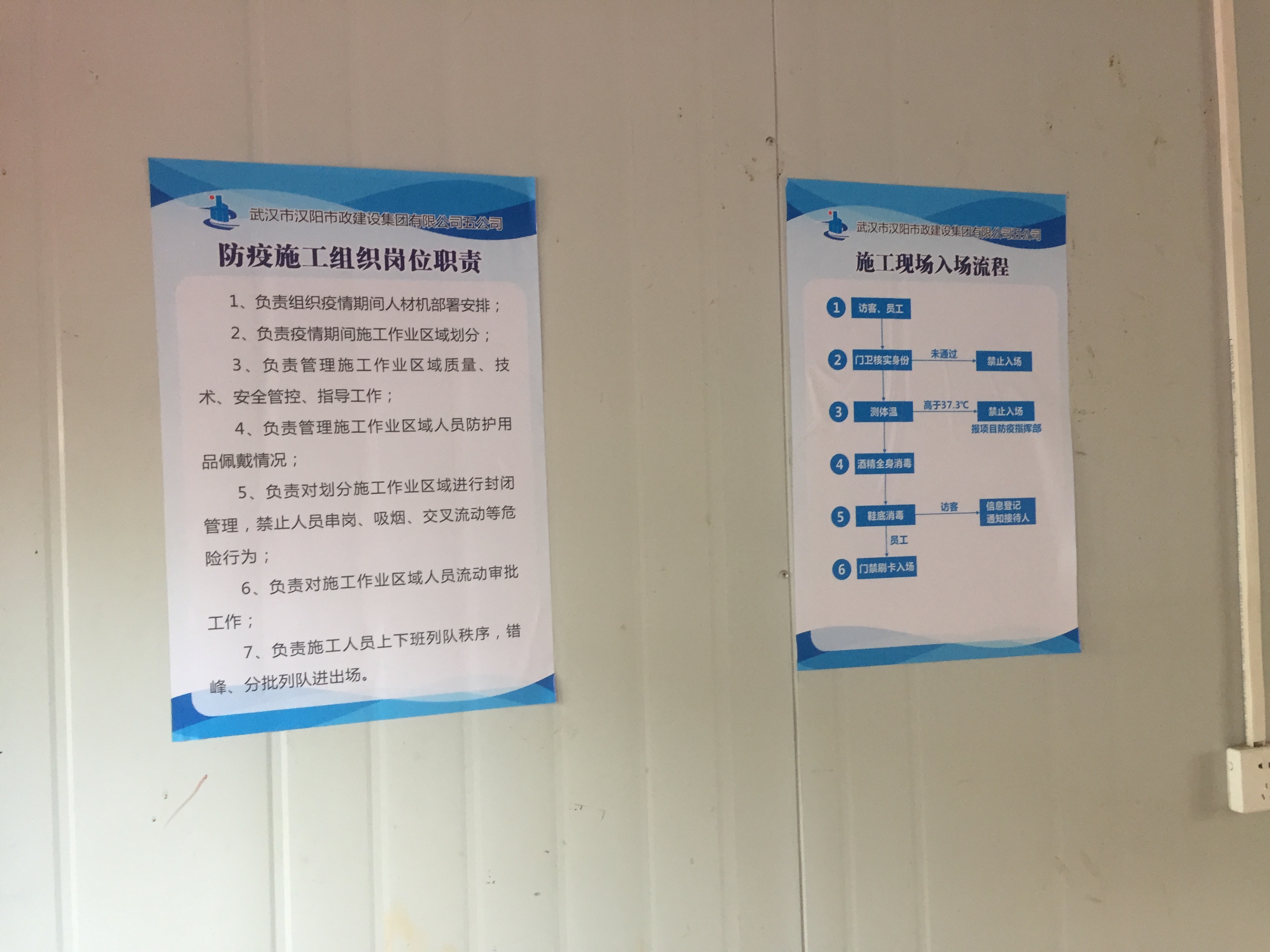 在正式復(fù)工前,漢陽市政五公司迅速成立防控工作小組,認(rèn)真編制落實(shí)防疫復(fù)工方案及安全交底,將防疫和復(fù)工責(zé)任落實(shí)到每一名管理人員。同時(shí)實(shí)行一人一檔,對(duì)每名進(jìn)場人員進(jìn)行信息登記、消毒、測溫等程序,確保信息可追溯。建立防疫物資進(jìn)出庫登記臺(tái)賬,保障防疫資金專款專用,同時(shí)對(duì)辦公區(qū)域及生活區(qū)域每天進(jìn)行三次消殺,積極做好防疫宣傳及防疫培訓(xùn),從源頭監(jiān)控和杜絕疫情傳播,為項(xiàng)目復(fù)工復(fù)產(chǎn)創(chuàng)造積極條件。