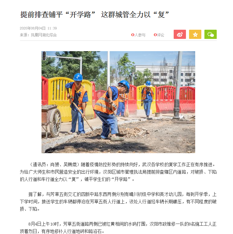 ? ? ? 近日,漢陽市政維修一隊(duì)負(fù)責(zé)的漢陽區(qū)內(nèi)日常道路維修工作,先后受到漢陽知音、鳳凰網(wǎng)湖北綜合、長江日報(bào)等主流媒體的一致好評。此前,漢陽市政維修一隊(duì)道路維修工作也曾多次獲媒體正面報(bào)道。