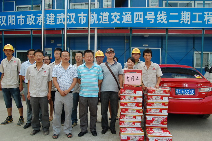 8 號,集團公司黨委頂著烈日來到鸚鵡洲大橋、玫瑰苑地鐵、福利院、惠民苑、開發區造紙東路等工地,向三伏天堅守一線施工的勞動者們表示親切慰問,送去絲絲清涼。集團公司領導對不畏高溫、堅持在一線辛勤工作的工人們表示問候和感謝,對他們拼搏奉獻的敬業精神予以很高的贊賞,并送上了慰問品——風油精、人丹、綠豆、啤酒等。希望大家在努力工作的同時,注意休息,保重身體,避開高溫時段作業,嚴防中暑。