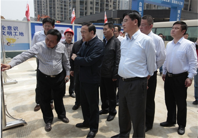 5月5日,武漢市市長(zhǎng)唐良智、副市長(zhǎng)張光清一行蒞臨博宏建設(shè)十升路道排工程施工現(xiàn)場(chǎng)檢查指導(dǎo)工作。