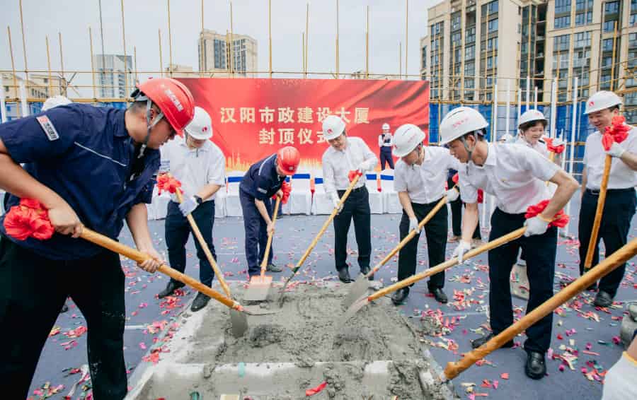 ? ? ? 10點38分,嚴悌文等與會領導參與漢陽市政建設大廈項目最后一方混凝土澆筑儀式,項目正式封頂!陣陣禮炮聲響起,標志著漢陽市政建設大廈完成一個重大節點任務,順利進入新的建設階段。