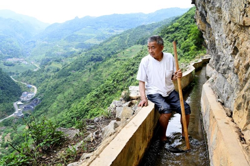 我從當(dāng)上村干部的那一天起,就立下誓言,要為鄉(xiāng)親們干三件事:引水、修路、通電。我用了整整36年時(shí)間,帶領(lǐng)鄉(xiāng)親們在莽莽深山中修了一條水渠,這條水渠繞過3座山頭、穿過3道絕壁,引來清亮甘甜的清泉,滋潤了祖祖輩輩干渴貧窮的草王壩村,我因此被鄉(xiāng)親們稱為“當(dāng)代愚公”。