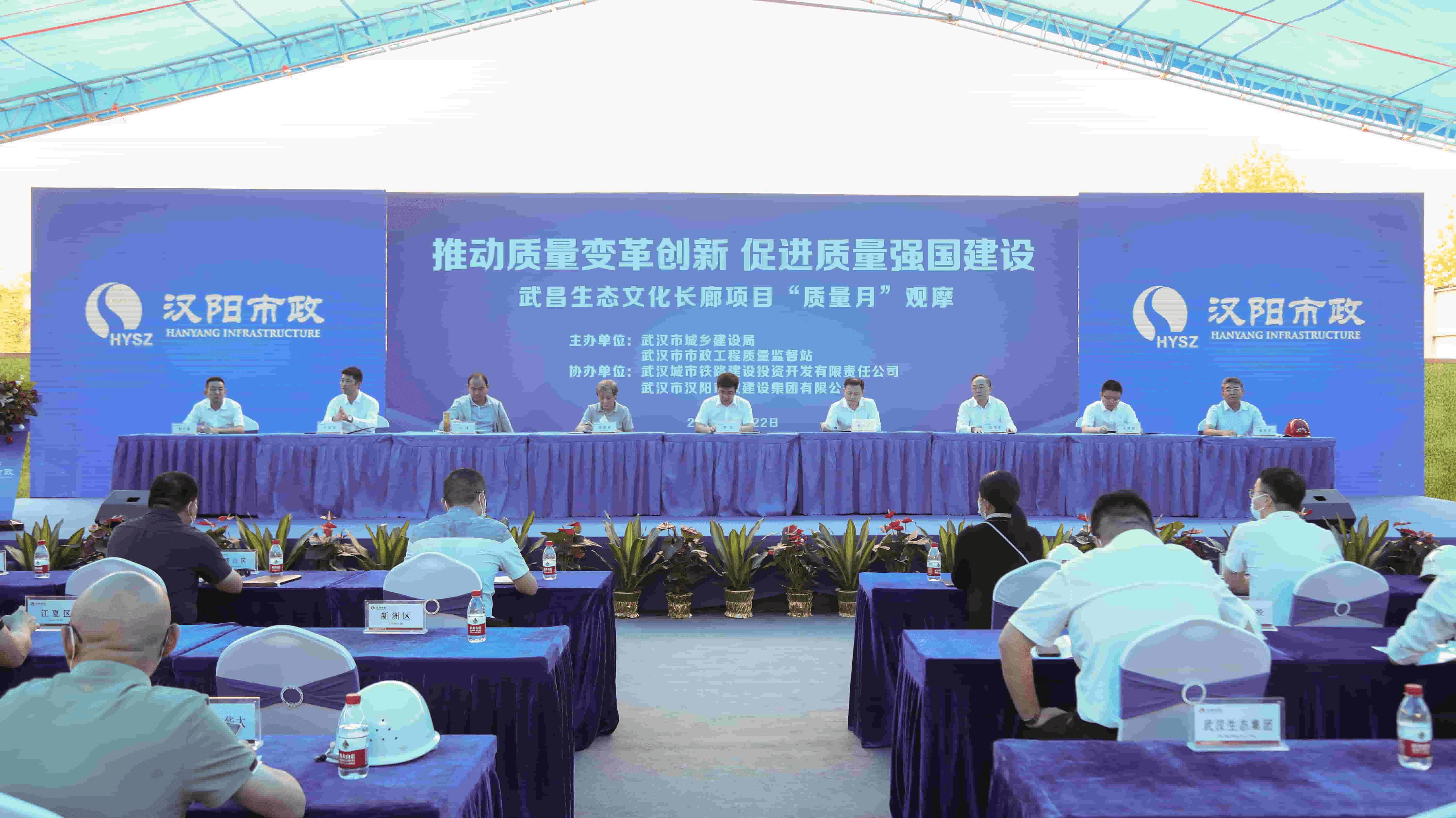 ? ? 9月22日上午,武漢市2022年“質量月”觀摩會在漢陽市政武昌生態文化長廊項目部舉行!本次市級觀摩活動由武漢市城鄉建設局、武漢市市政工程質量監督站主辦,武漢城市鐵路建設投資開發有限責任公司、武漢市漢陽市政建設集團有限公司協辦。