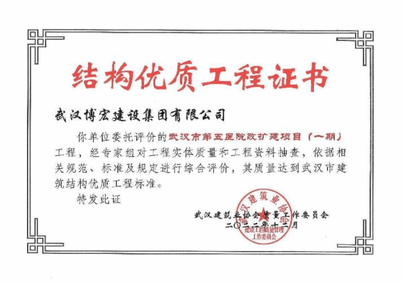 武漢市第五醫(yī)院改擴(kuò)建項目榮譽(yù)