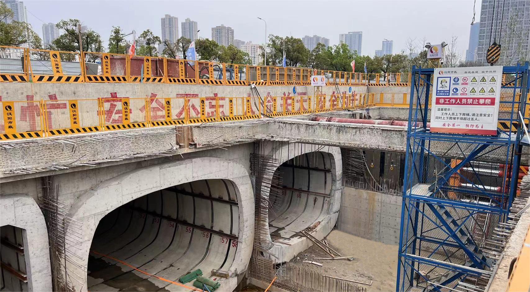 4月9日晚,漢江南岸綜合治理工程EPC項(xiàng)目下穿龍陽大道通道現(xiàn)場緊鑼密鼓地進(jìn)行著施工作業(yè),現(xiàn)場所有目光匯聚在4#通道接收井洞口處,隨著頂管機(jī)刀盤破洞而出,下穿通道4條頂管全部實(shí)現(xiàn)貫通。