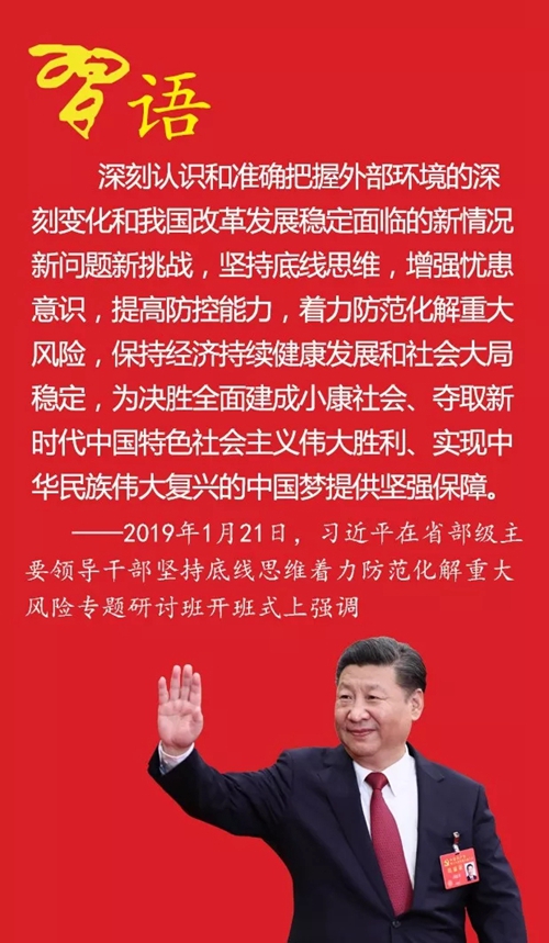 ——2019年1月21日,習(xí)近平在省部級(jí)主要領(lǐng)導(dǎo)干部堅(jiān)持底線思維著力防范化解重大風(fēng)險(xiǎn)專(zhuān)題研討班開(kāi)班式上強(qiáng)調(diào)