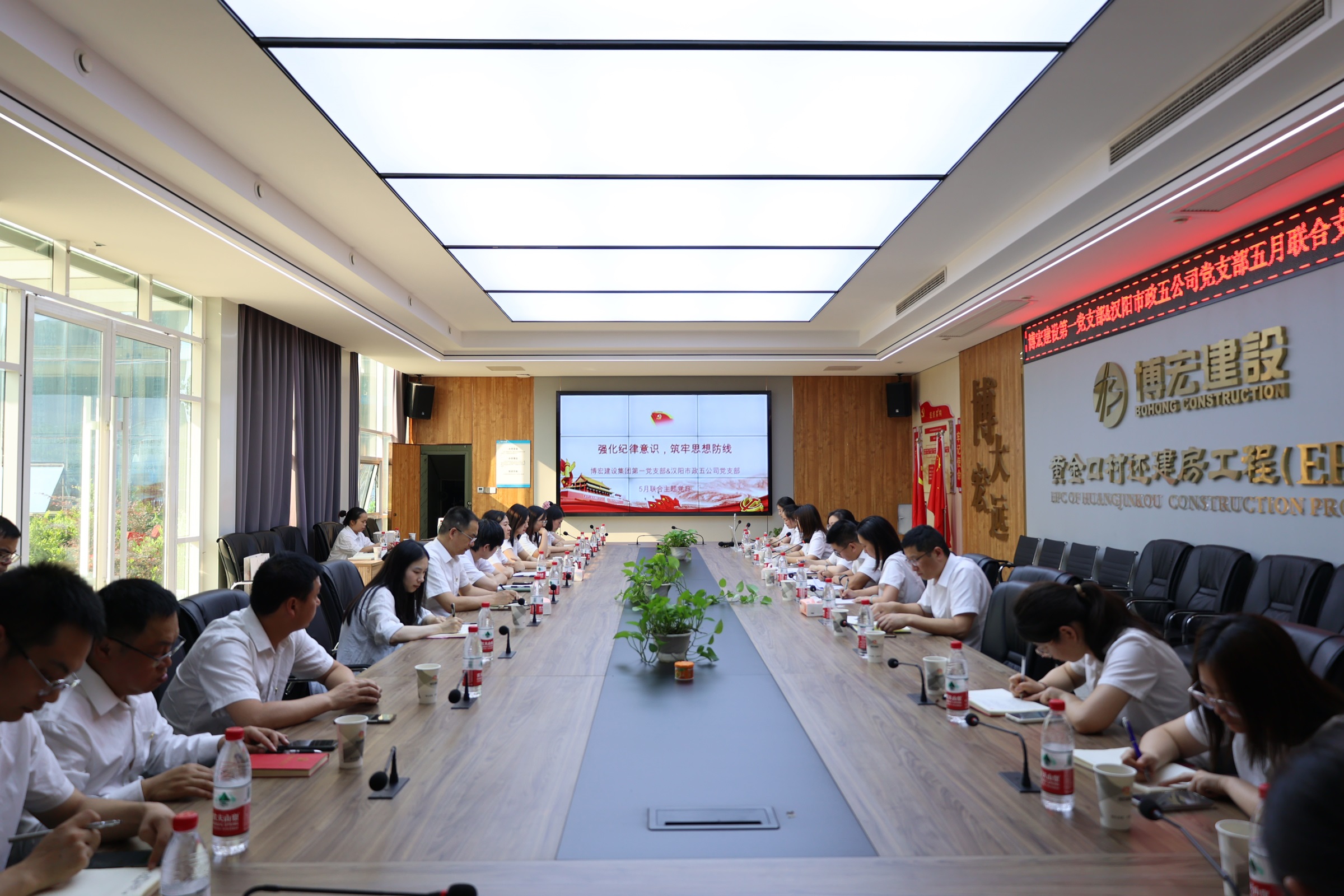 ? ? 5月24日,漢陽市政博宏建設(shè)第一黨支部與漢陽市政五公司黨支部共同開展“強(qiáng)化規(guī)矩意識(shí),筑牢思想防線”五月聯(lián)合支部主題黨日,共計(jì)32名黨員代表參加活動(dòng)。活動(dòng)在黃金口村還建房項(xiàng)目會(huì)議室舉行。